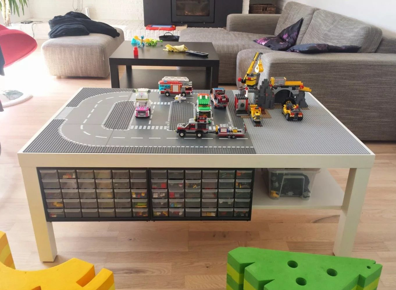Лего‑стол — это специально спроектированная мебель, изготовленная, как правило, из МДФ или натурального дерева. Его отличительная черта — регулируемые телескопические ножки, позволяющие подстраивать высоту под возраст ребёнка. Рабочая поверхность стола либо целиком, либо частично покрыта особым игровым полотном, подходящим для сборки конструкторов.